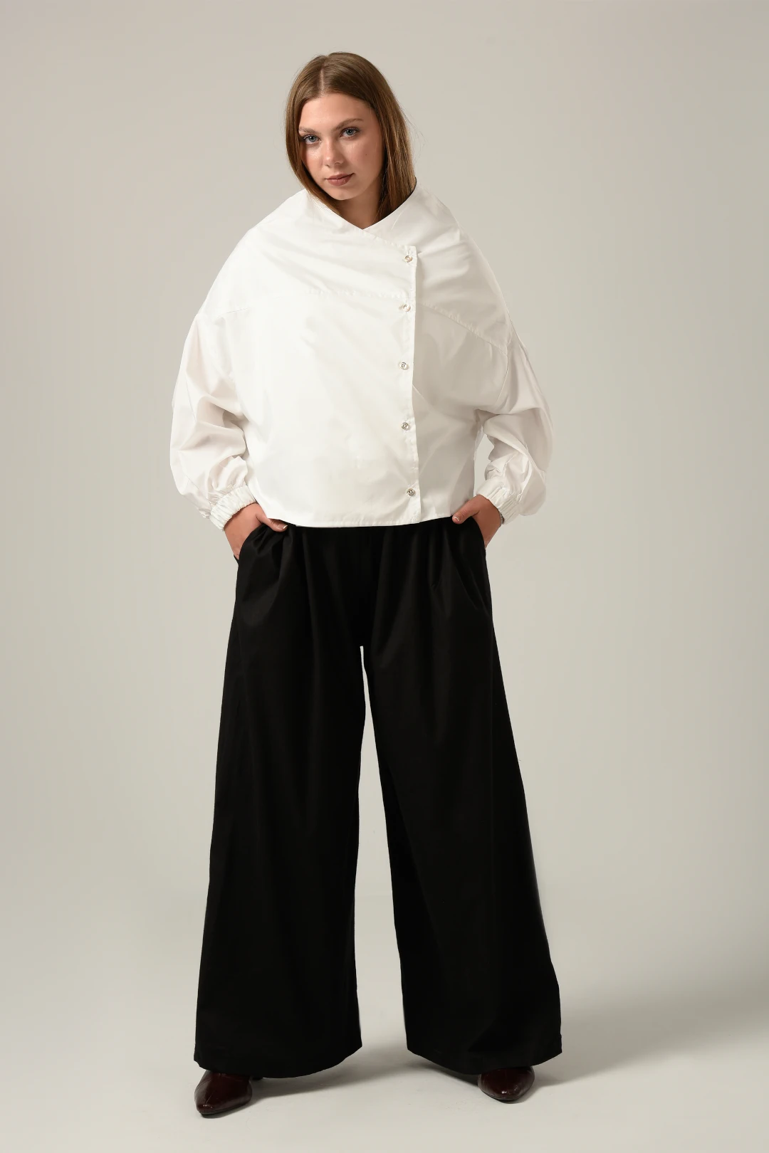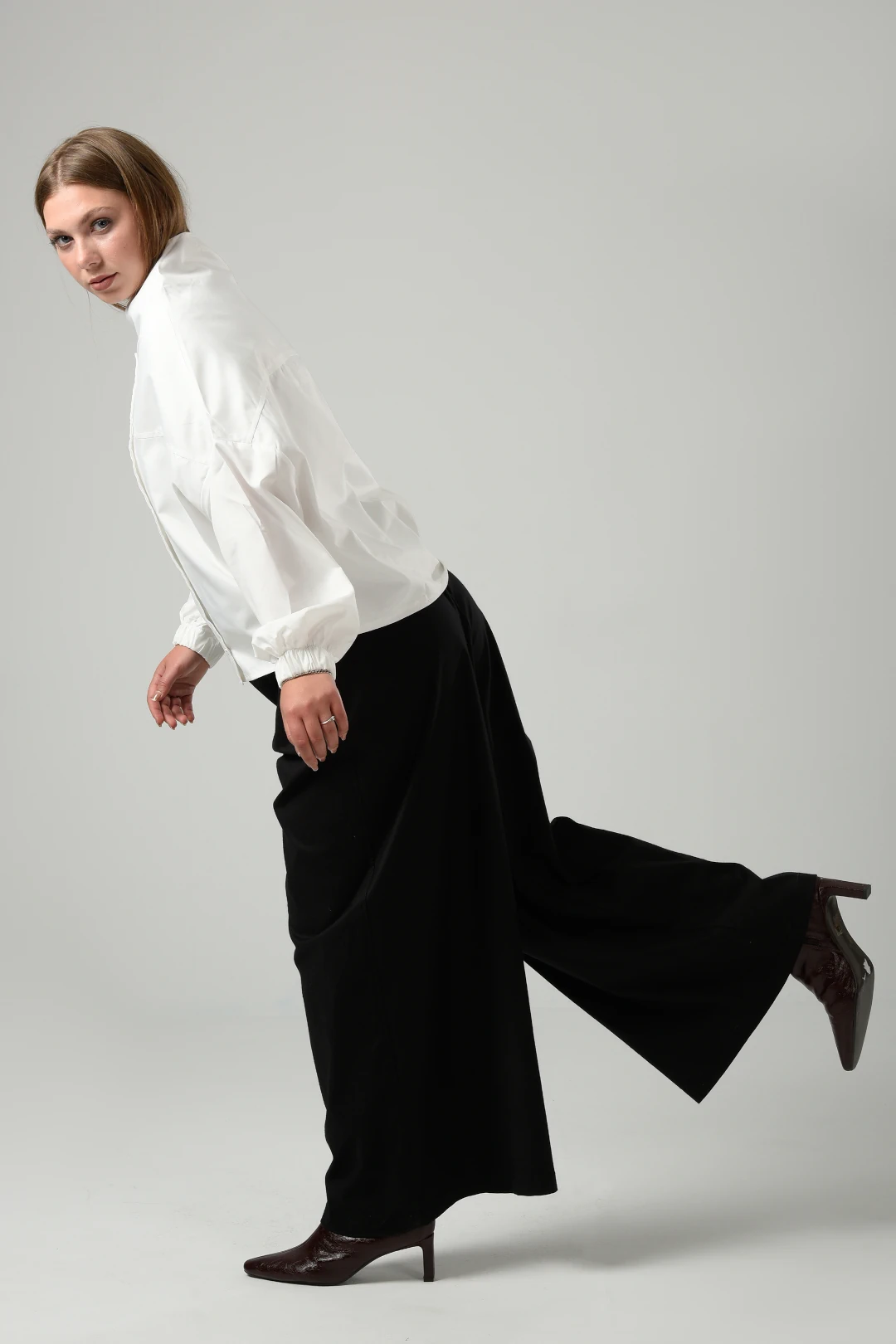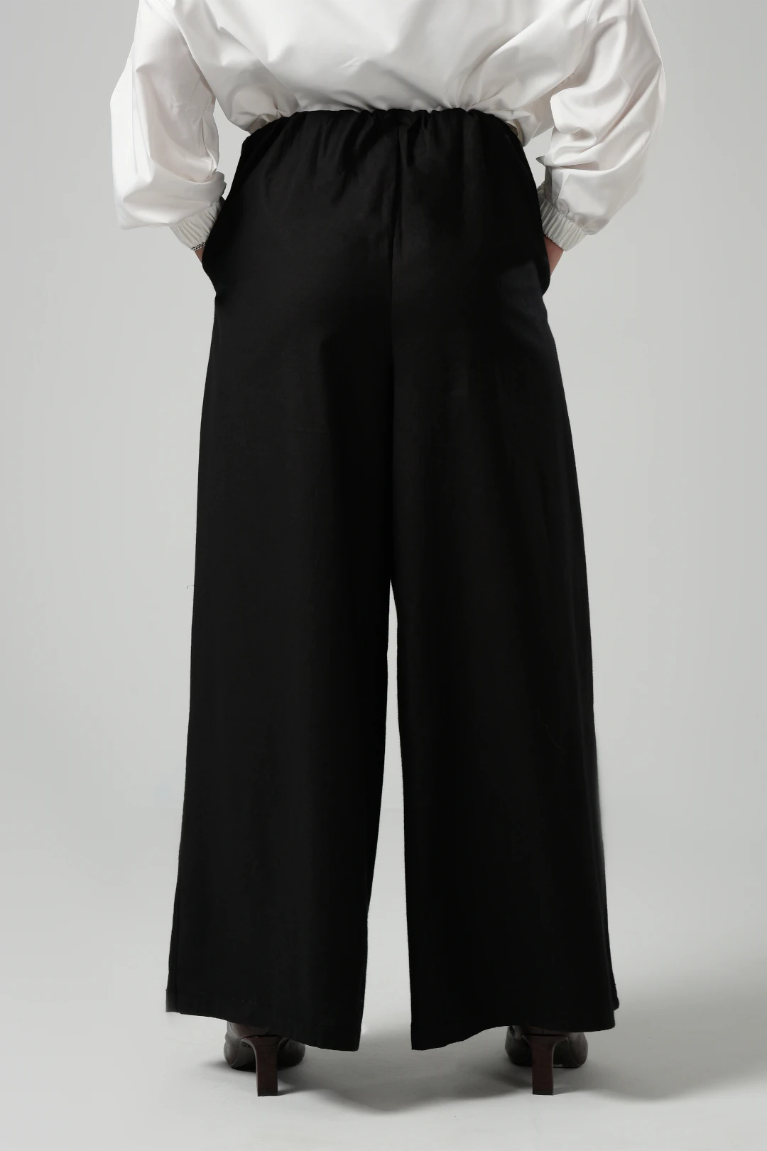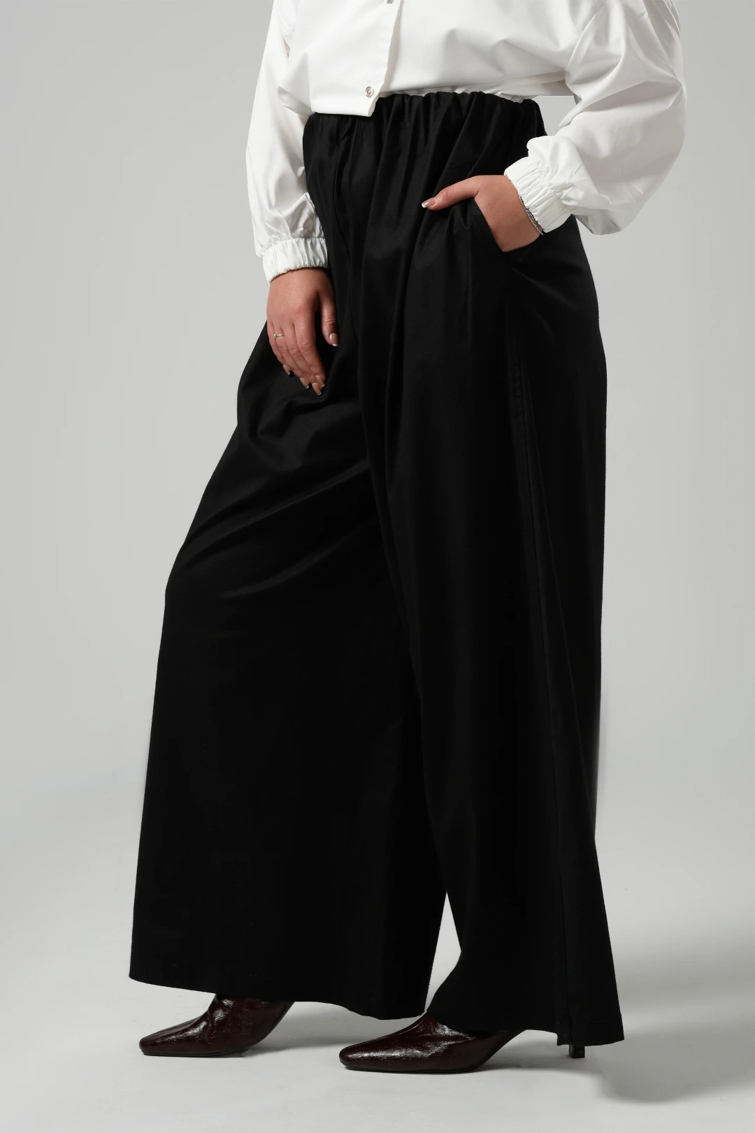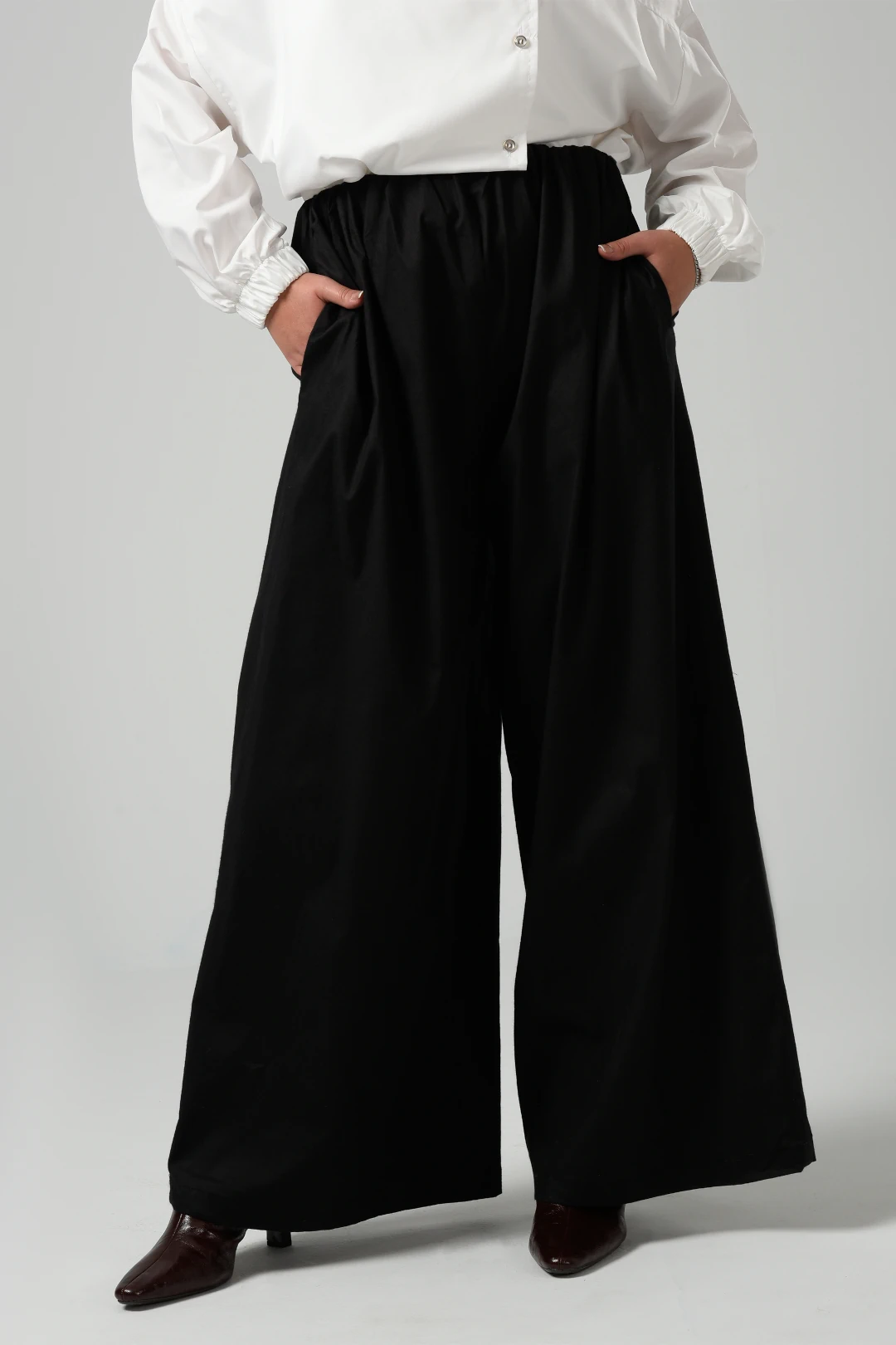 Wide Leg Trousers in Black featured in poplin and elastic waist full length